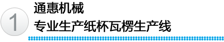 江陰市通惠機械有限公司,專業(yè)生產紙杯瓦楞生產線,研發(fā)的中空紙杯專用瓦楞杯生產線,S楞、菱形、圓形、點狀形瓦楞紙杯專用生產線。同時,還生產單面瓦楞紙板生產線。